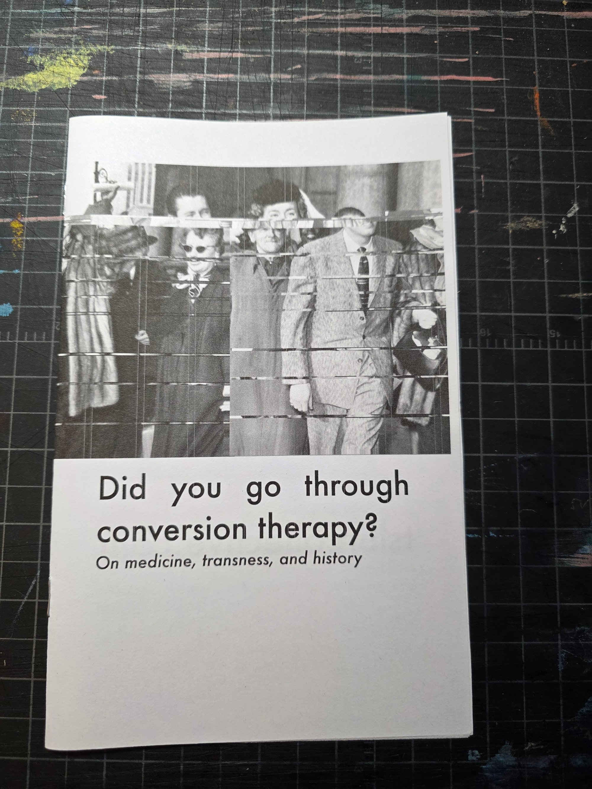 A paper copy of a T Slur Collective zine. This zine explores the medicalization of transness and the interactions of trans people with the "healthcare" industry.