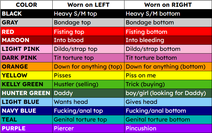 These leather laces were designed to let you flag with your shoelaces! They're available in all the colors listed on our flagging chart. They'll also function great as corset lacing on a leather garment!