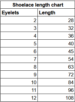 Laces are cut to roughly 3/16" wide, out of hand-dyed, 5-6 oz veg tan leather, and they're inspected for any weak spots that might tear with use. Maximum lace length is dependent on the length of the side of leather I'm working with, but the average is between 70-80". Below 80", I can cut your laces to any length you want. If you want your laces longer than 80" I can likely accommodate, but contact me before ordering to confirm. I can also cut your laces thinner or broader if you contact me first. The length chart is included to help you estimate the length you'll need based on the number of eyelets on your shoes, but I recommend measuring the laces you have on them, keeping in mind that leather laces are a bit stiffer than fabric laces and so will need to be a bit longer. While these laces will always be stiffer than your average fabric laces, they do soften quickly as you wear them, so if they're too stiff when you get them, wear them out a couple times, or rub them down with conditioner until they soften up. Laces are sold by the pair.